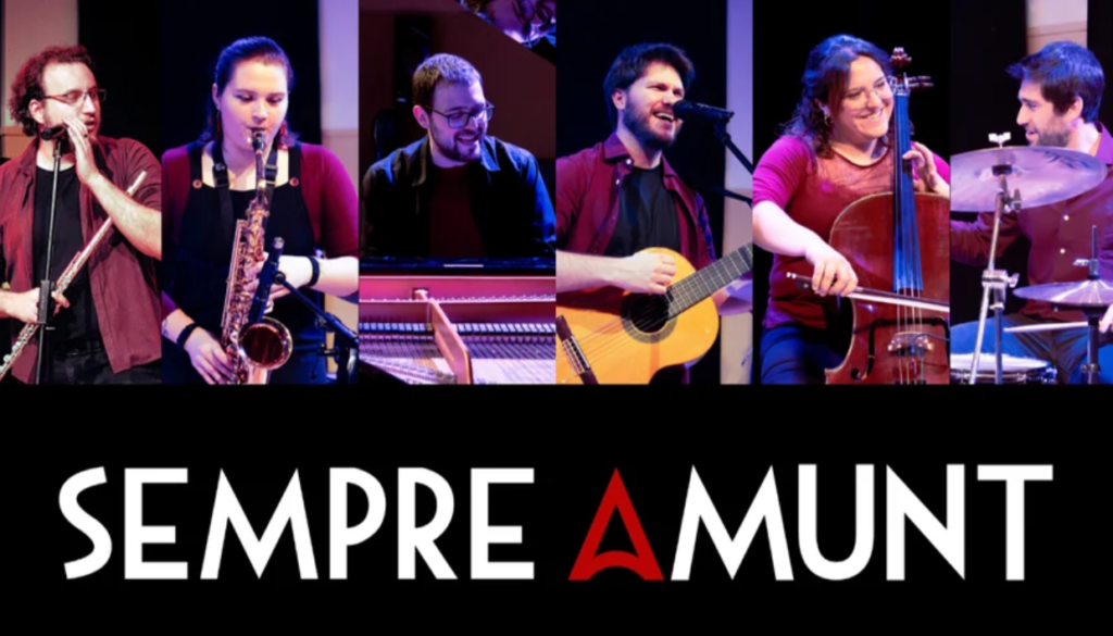 Sempre Amunt       Descripció del grup: Sempre Amunt és un grup de rumba-pop-folk en català. Amb una combinació singular d’instruments on destaquen el violoncel o la flauta travessera, la seva música ens fa viatjar a través de relats que parlen de possibles passats, presents i futurs. Cada actuació de Sempre Amunt és